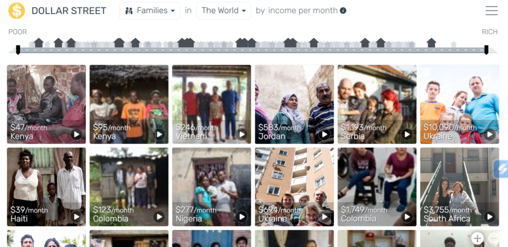 これは世界の人々の家が1本の道に面しているとし、左に行くほど貧乏な人が、右に行くほど金持ちな人が住んでいる道としている。