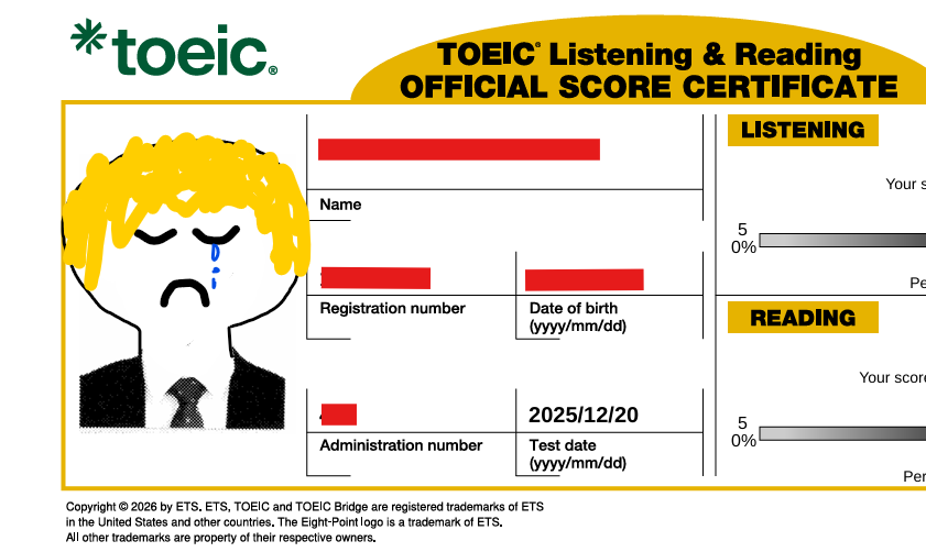 そんな僕の2025年のTOEICの点数を発表します。